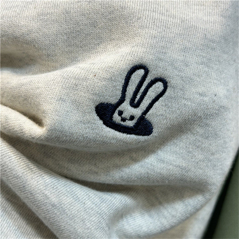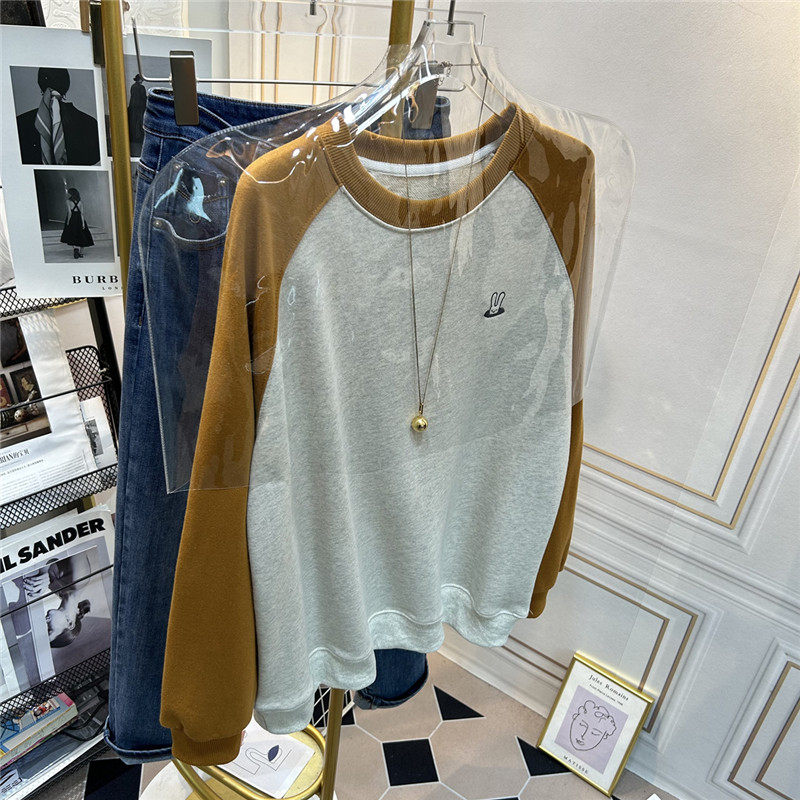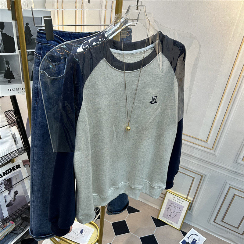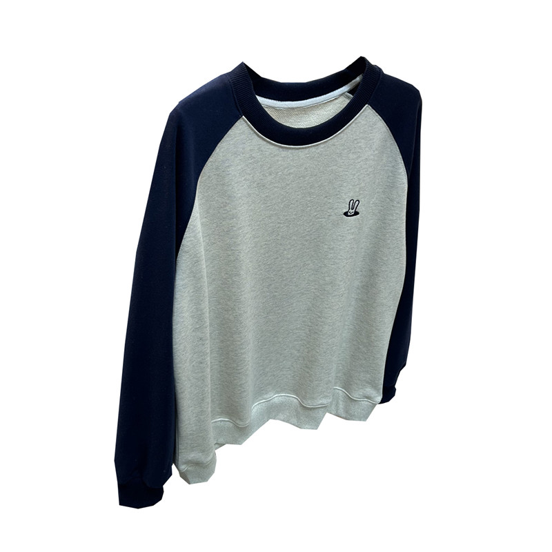 兔子刺绣拼接卫衣女新款2026爆款无帽圆领宽松薄款插肩袖上衣春秋