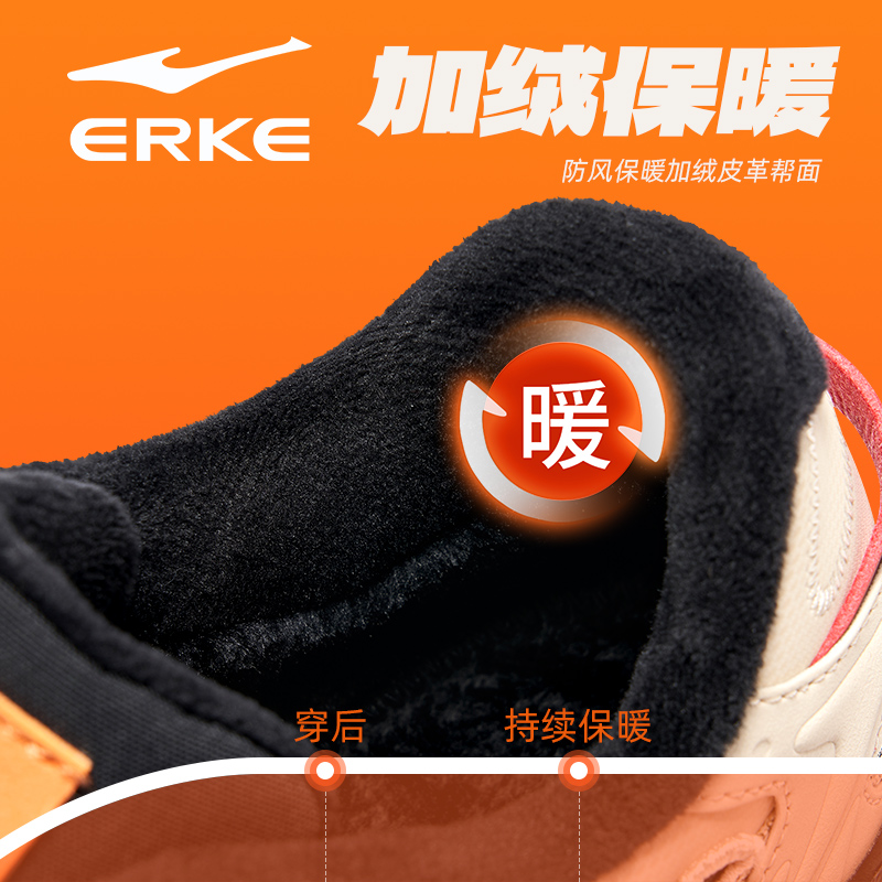鸿星尔克运动鞋男鞋冬季新款中学生青少年加绒加厚防水皮面棉鞋子