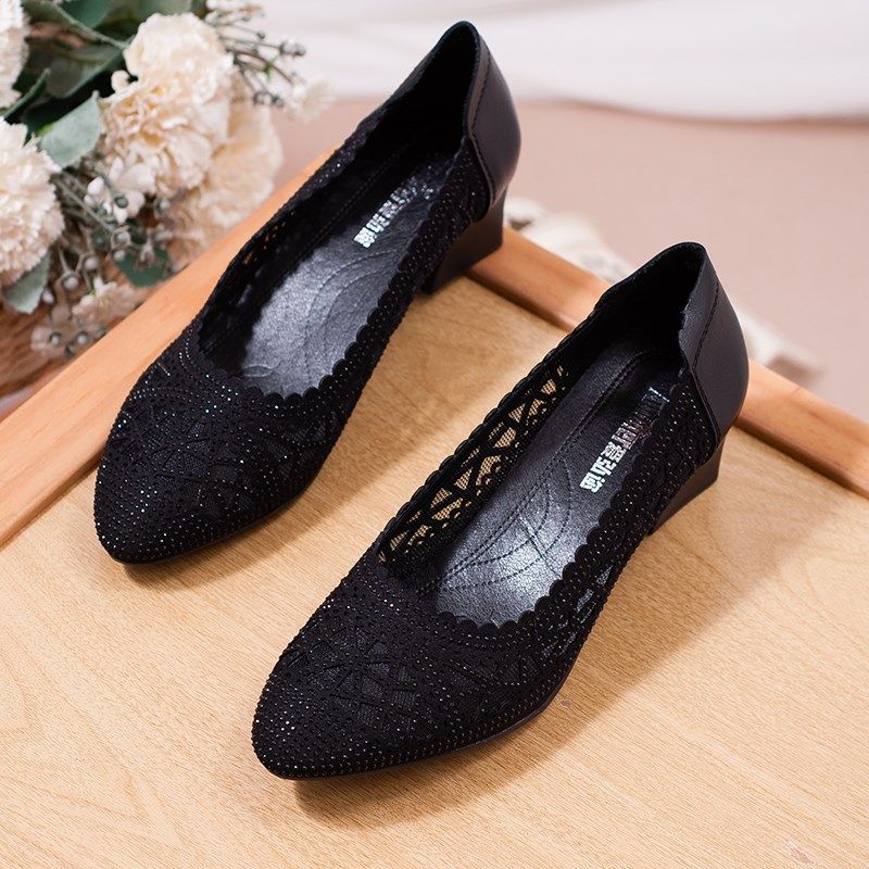 妈妈鞋夏款2024夏季新款中老年女士休闲透气凉鞋舒适软底带钻女鞋