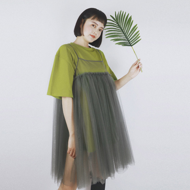 绿色大码宽松短袖t恤女夏季韩版纯棉半袖中长款下衣失踪上衣T恤裙