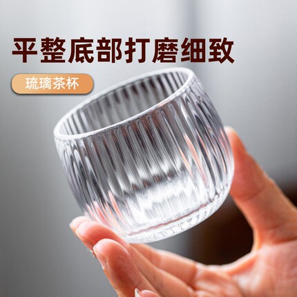 百福无铅琉璃玻璃杯茶盏个人单杯品茗杯千里江山功夫茶杯锤纹冰川