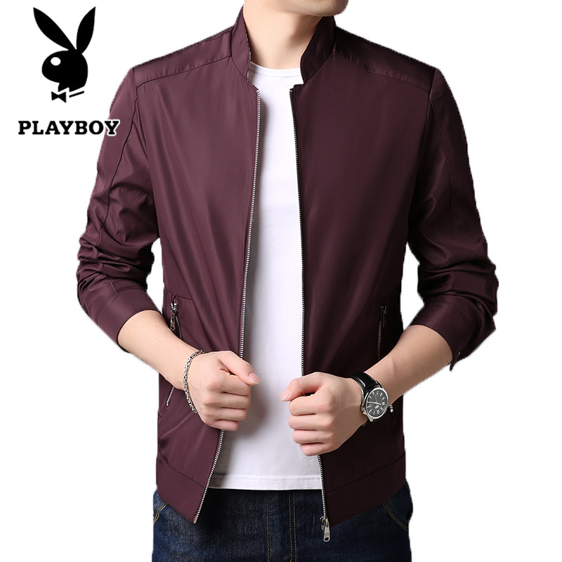 花花公子春秋季新款中年男士夹克棒球领薄款休闲外套爸爸男装上衣