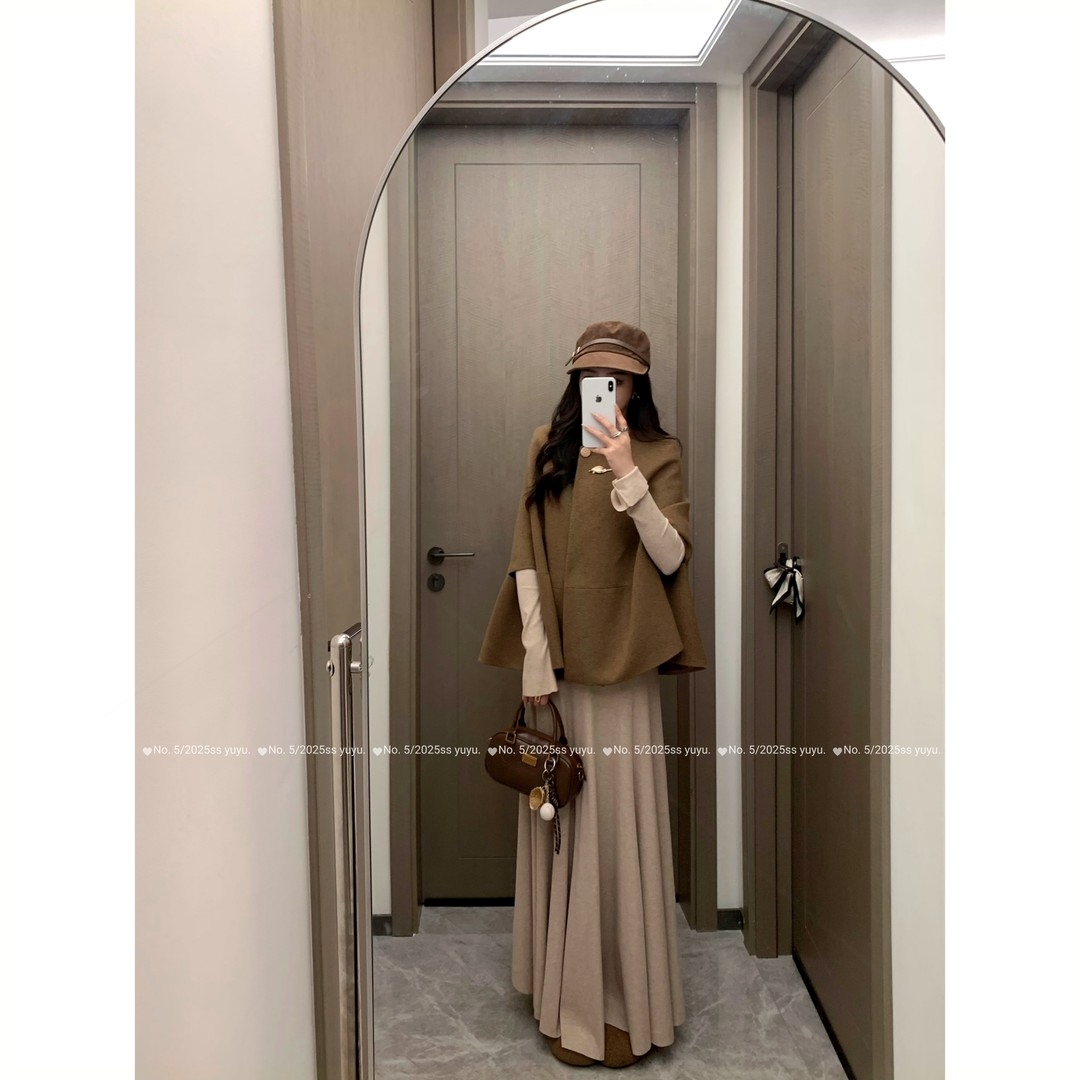 篷披肩上衣+打底长袖连衣裙两件套千金感休闲穿搭套工作室原创斗