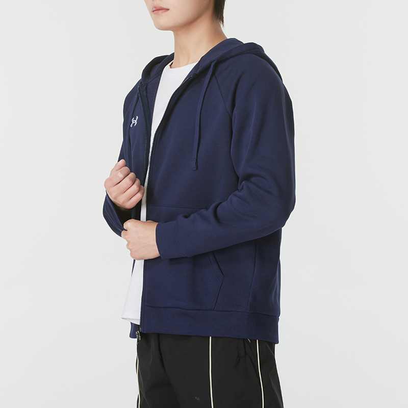 UA安德玛正品针织连帽加绒夹克男装冬季新款休闲外套运动训练服男