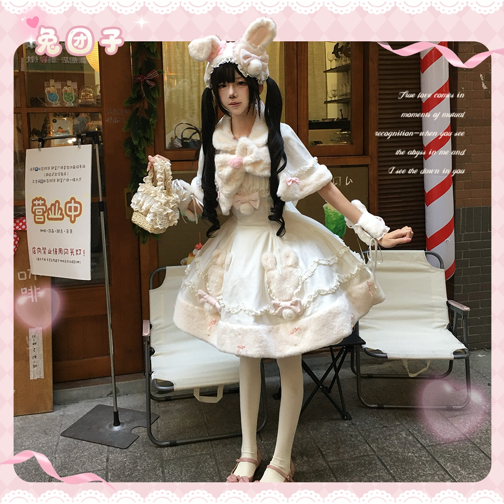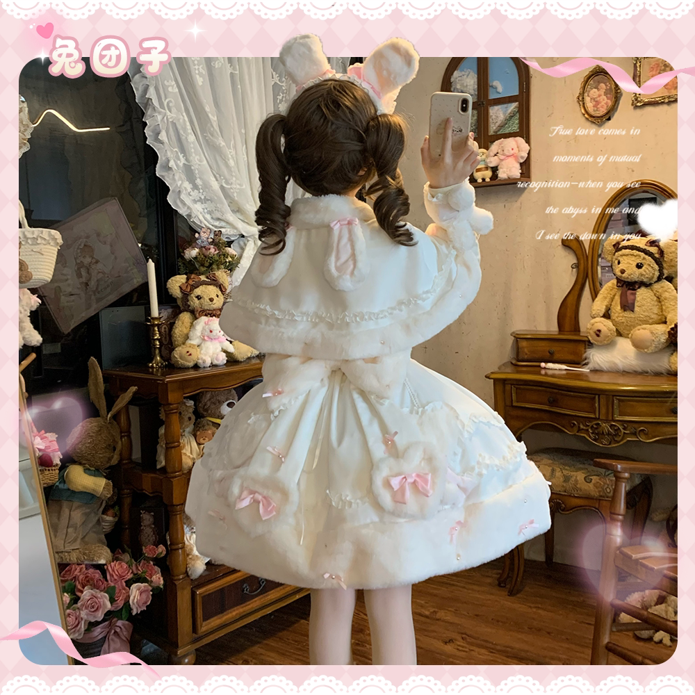 四批尾款【兔团子】冬季doll感两件套毛绒斗篷套装蝴蝶结保暖