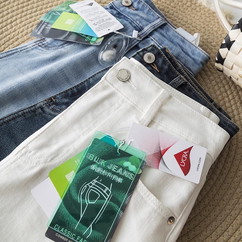 【真丝牛仔】无法抵抗复古高腰桑蚕丝三线缝制宽松显瘦阔腿牛仔裤