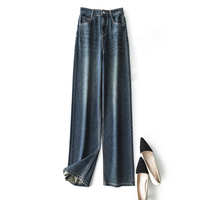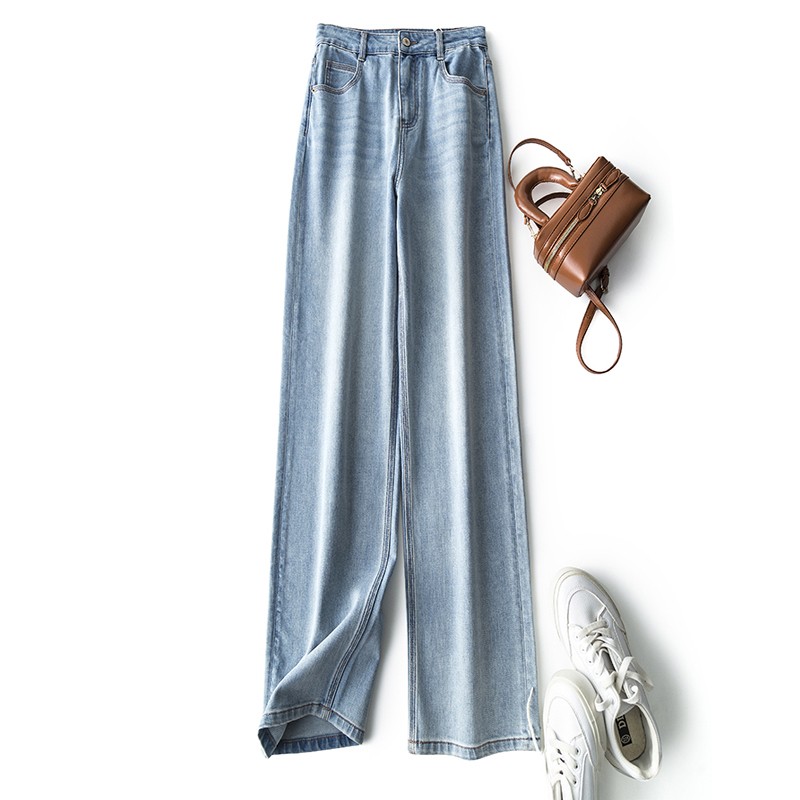 桑蚕丝三缝线宽松显瘦阔腿牛仔裤