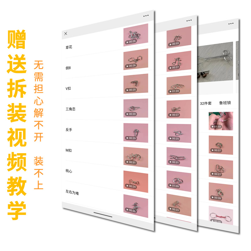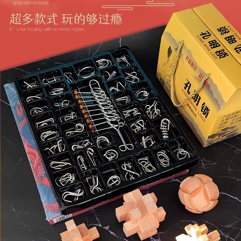 九连环鲁班锁儿童益智小学生玩具孔明智力铁解扣地狱级难度24件套