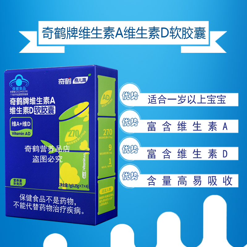 奇鹤堂奇鹤牌维生素A维生素D软胶囊1岁以上宝宝补充-维生素AD滴剂