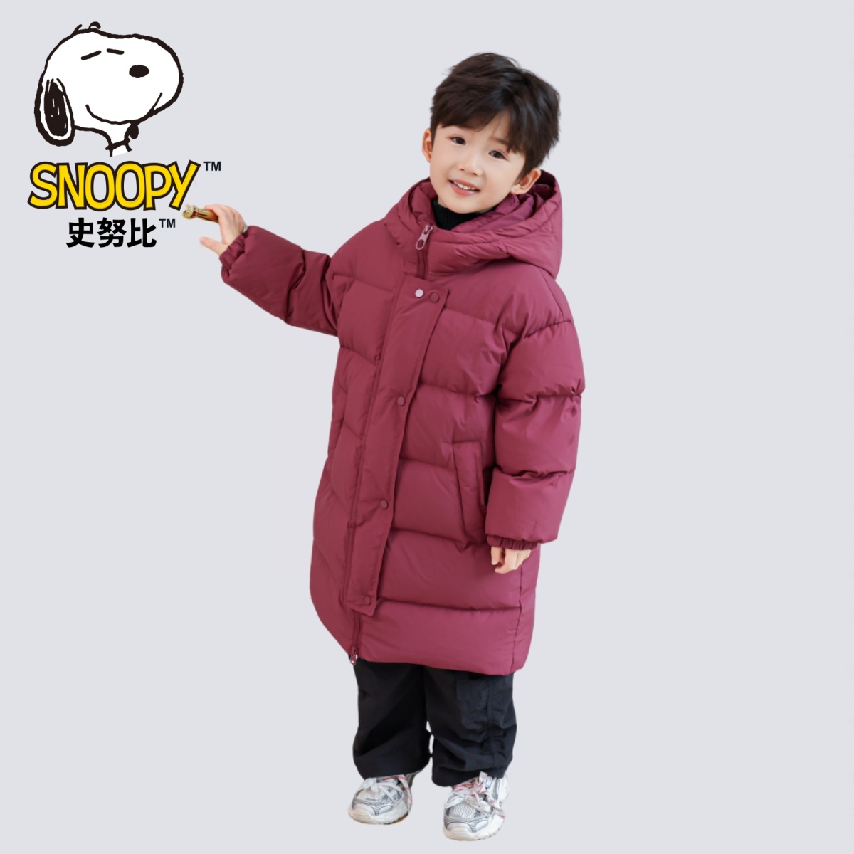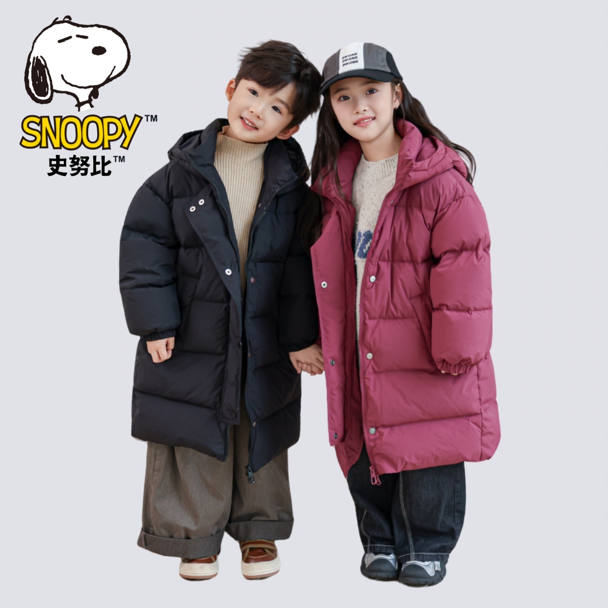史努比儿童装羽绒服2025冬季新款中长款过膝男女童加厚白鸭绒外套