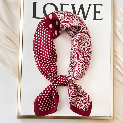 红色波点小方巾丝巾女春秋冬季搭配衬衫职业装围脖子薄围巾70x70