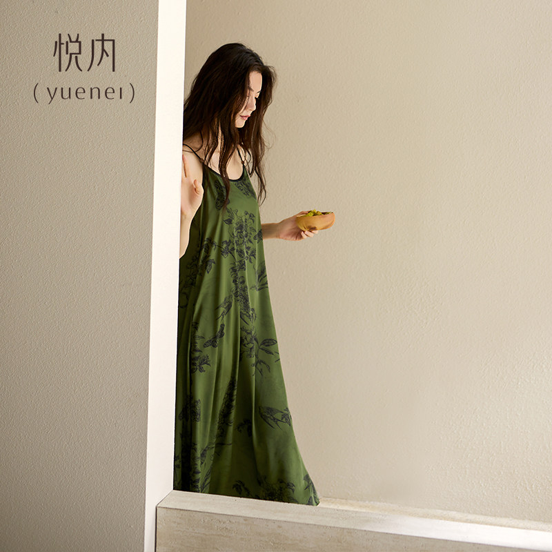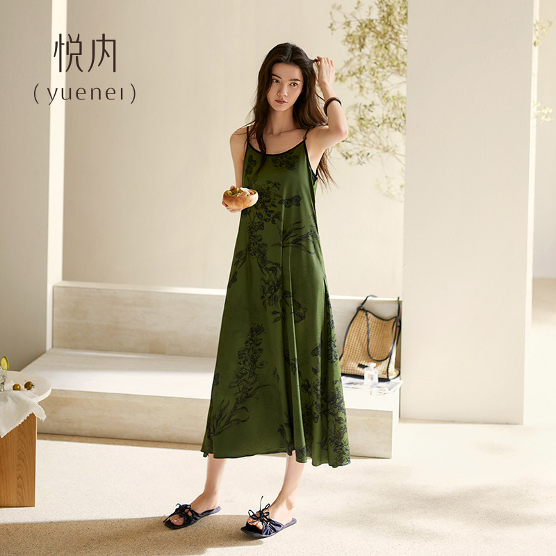 悦内带胸垫睡裙女款睡衣夏季夏天冰丝吊带背心长款丝绸休闲可外穿