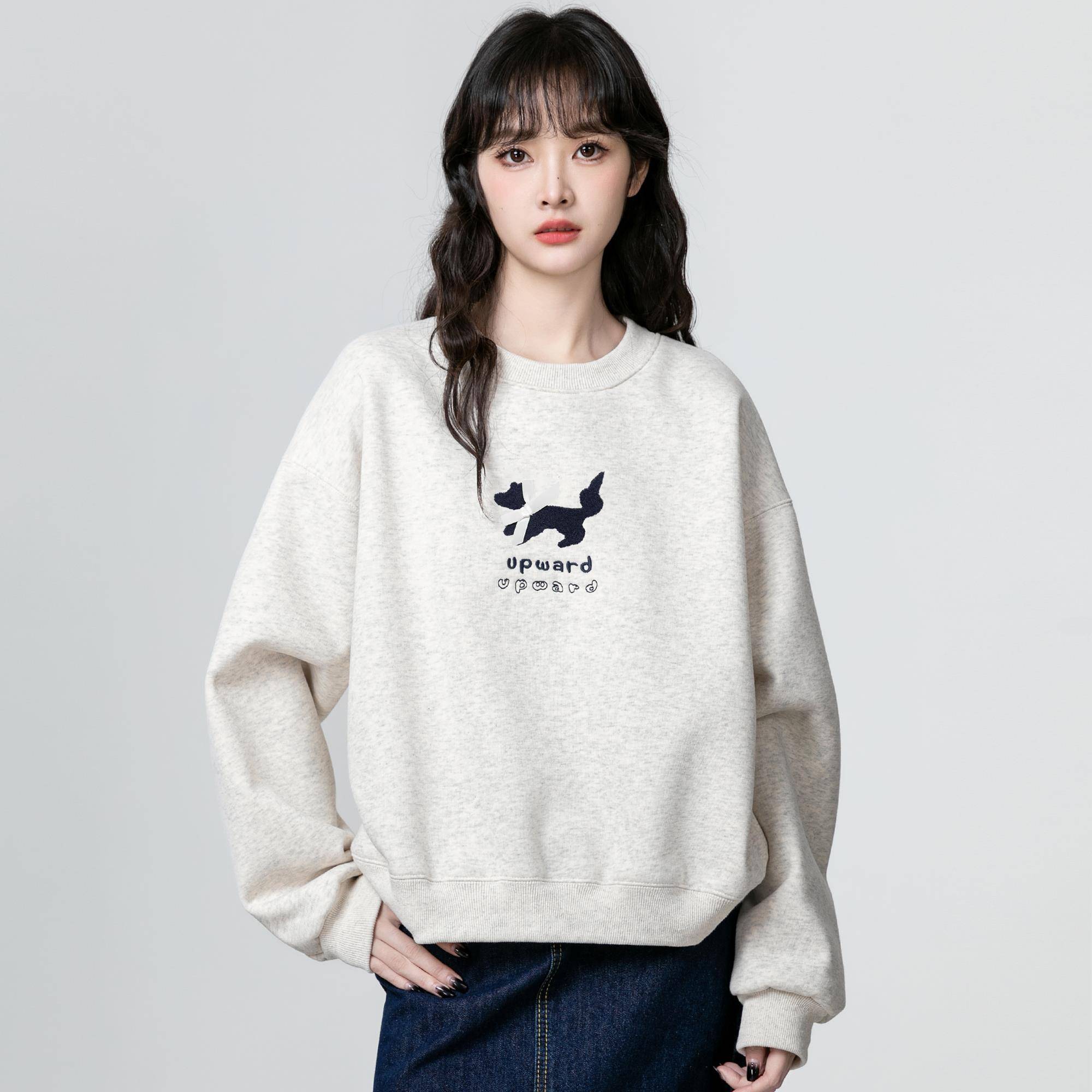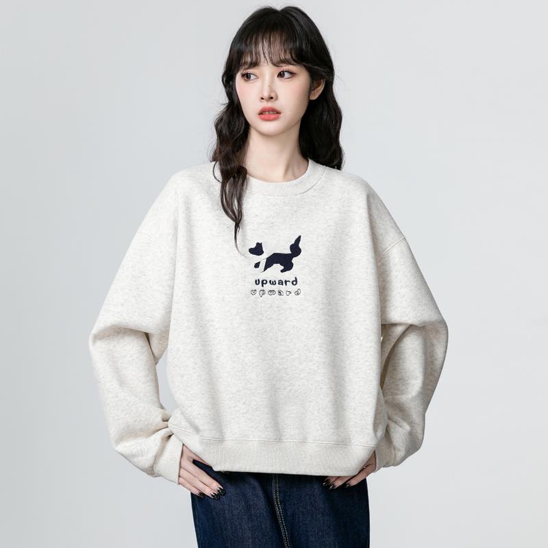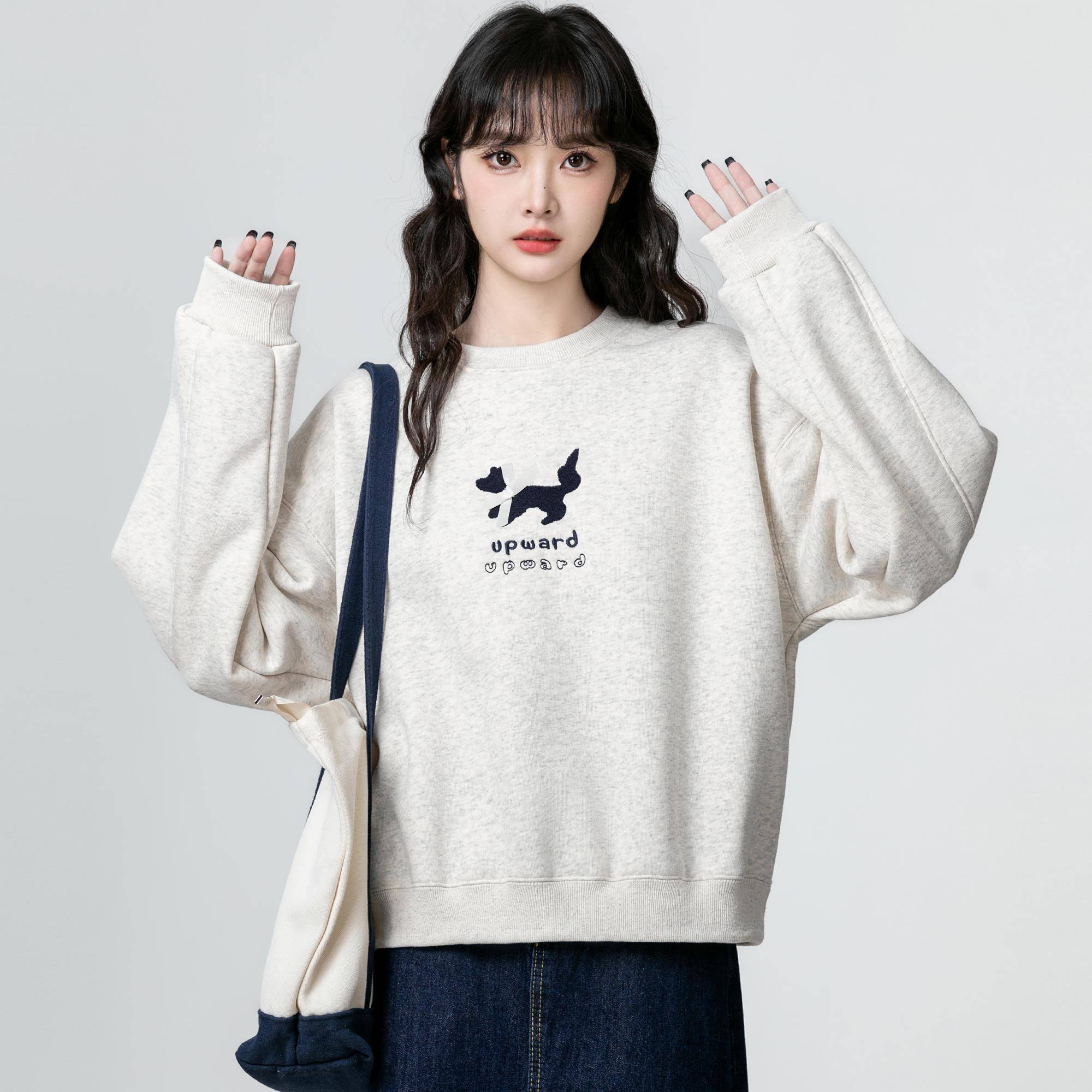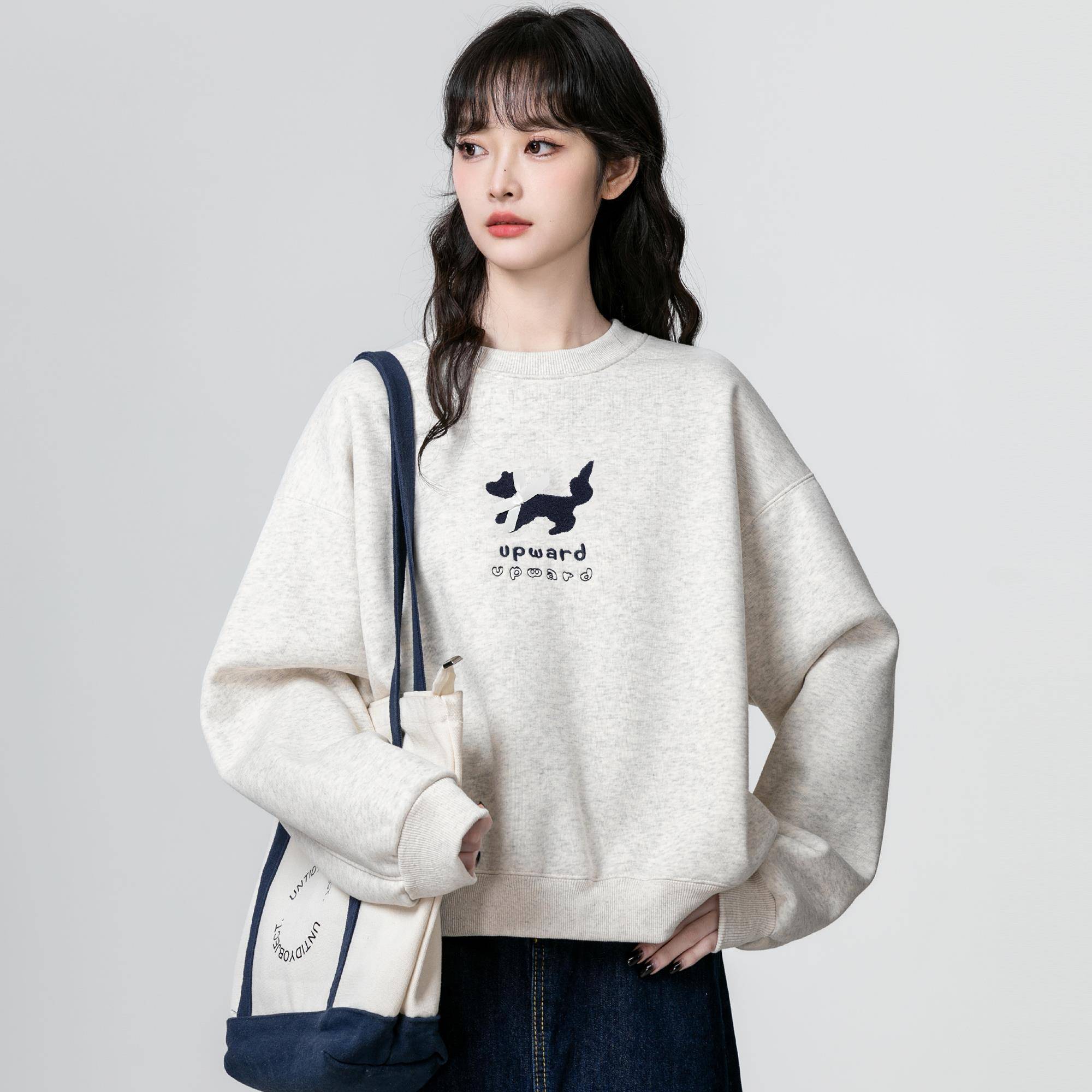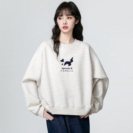 灰色圆领长袖卫衣女2025春秋季新款韩系百搭休闲宽松无帽套头上衣
