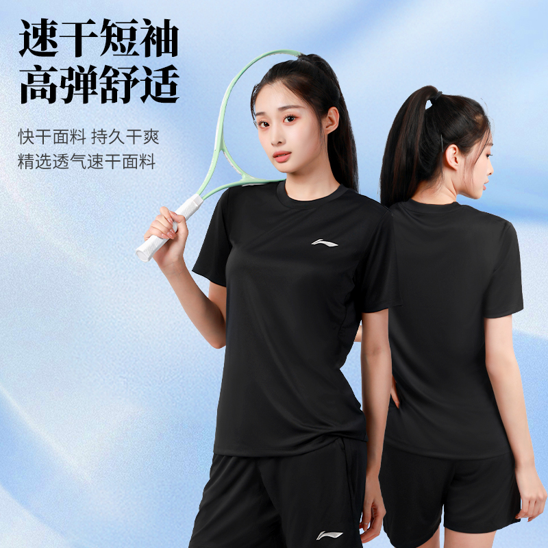 李宁运动套装女夏季薄款速干衣2025新款短袖短裤跑步T恤羽毛球服