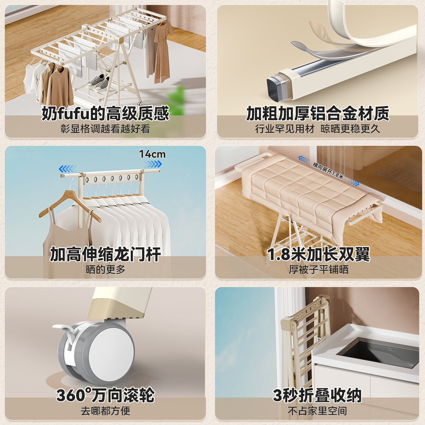 晾衣架阳台神器卧室家用凉铝合金杆户外支架晾晒被子落地折叠室内