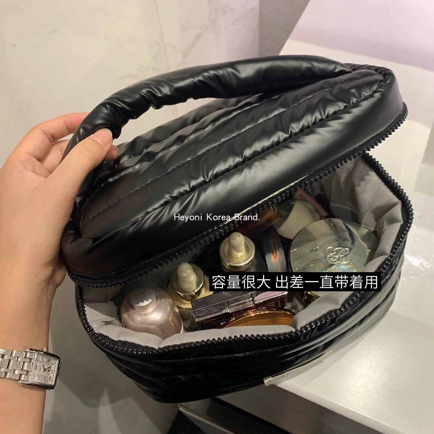 HEYONI韩国高级羽绒棉化妆包女大容量防水旅行出差便携收纳手提包