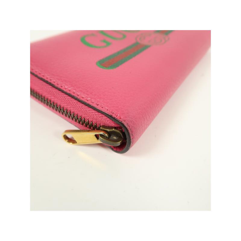 中古Gucci古驰女B级9新long wallet长钱包牛皮长钱包粉色正品HK