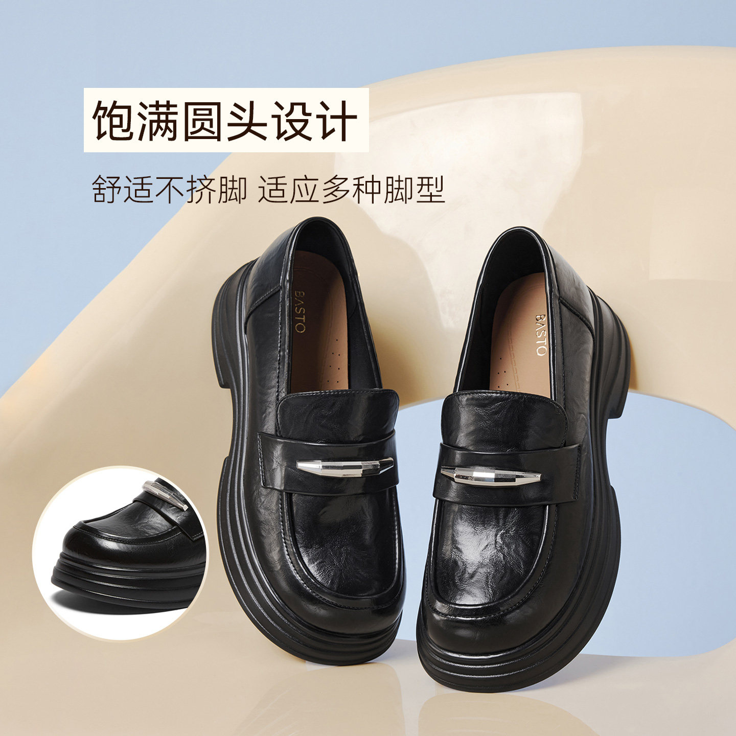 百思图2026春季新款商场同款乐福鞋简约学院风女单鞋W1031AA6