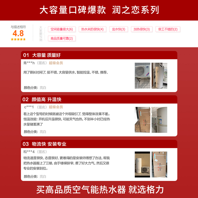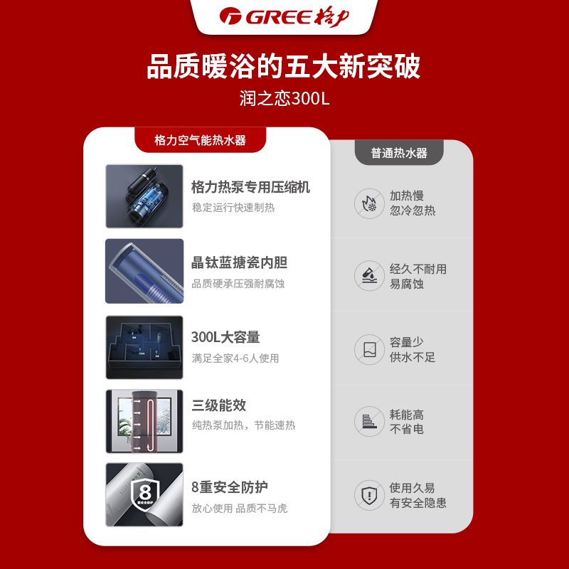 Gree/格力空气能热水器300升家用大容量三级能效润之恋节能旗舰店