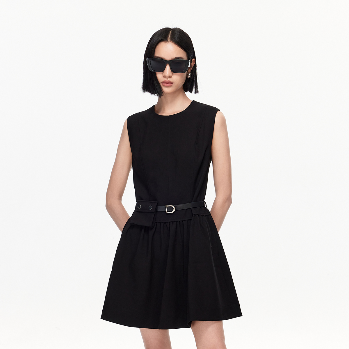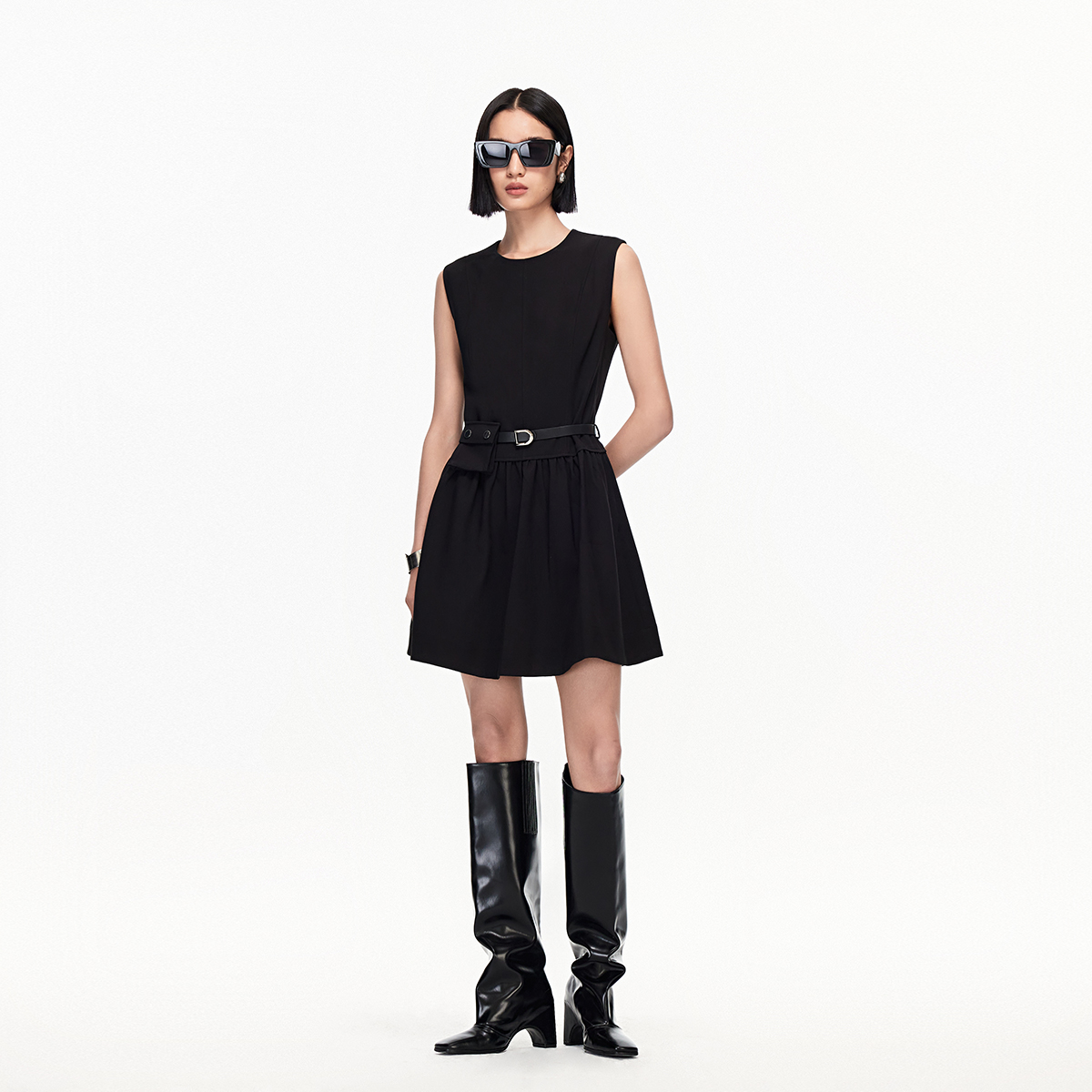 Vero Moda连衣裙2025秋季新款腰带收腰显瘦A摆短裙休闲32537A003