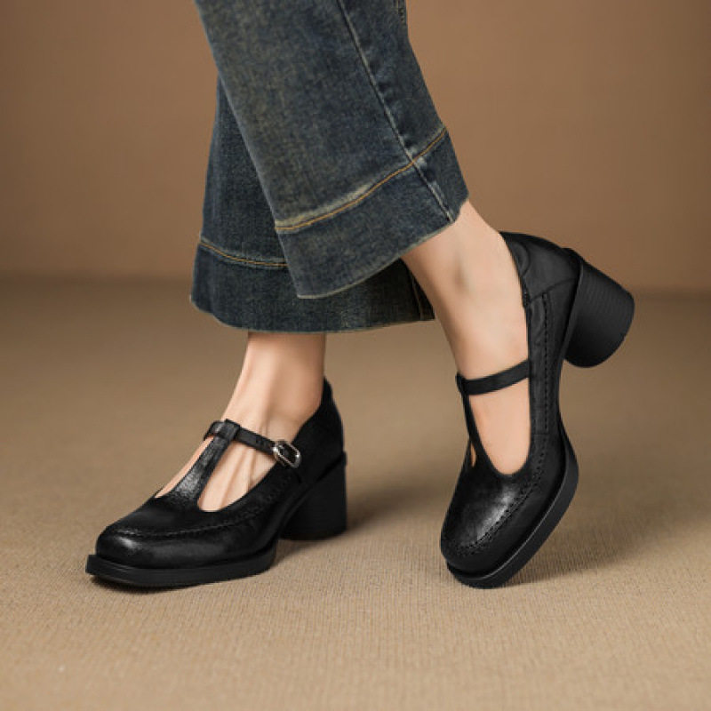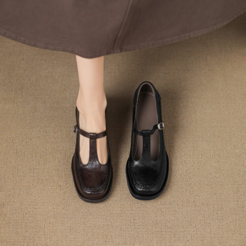 女士秋季法式复古风时尚2025年新款粗跟方头中跟玛丽珍鞋浅口单鞋