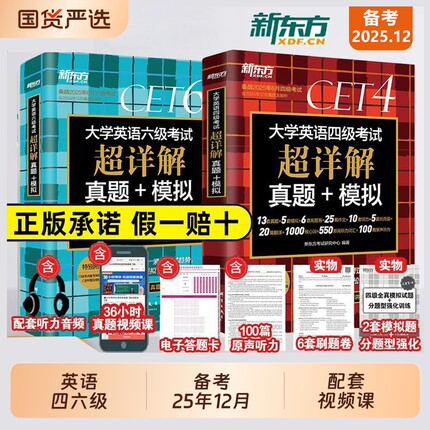 四级考试英语真题试卷 备考2025年12月大学四六级历年超详解真题模拟词汇书单词阅读理解听力翻译作文专项预测训练资料cet46