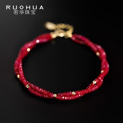 若华珠宝缠绵=鸽血红宝石手链女18K金彩宝手串彩金手饰礼物定制