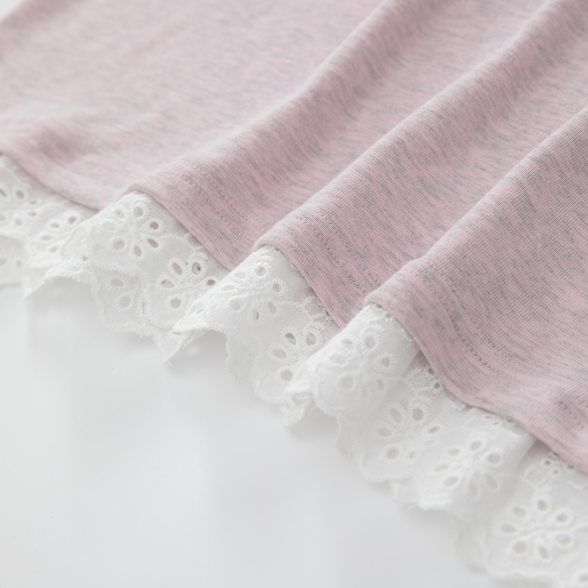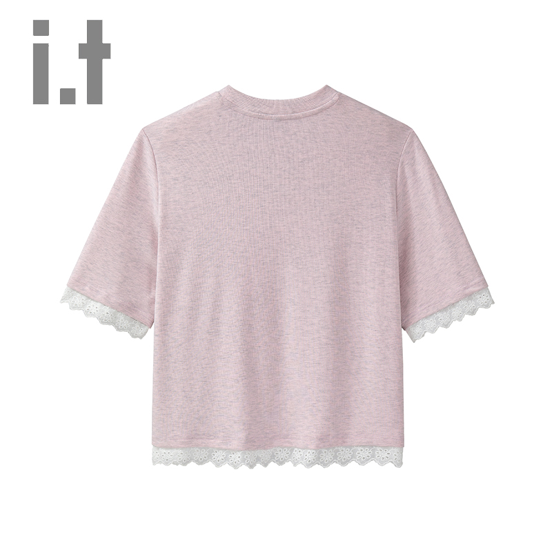 it:CHOCOOLATE夏季甜美短袖T恤女蕾丝拼接花边撞色少女宽松上衣服