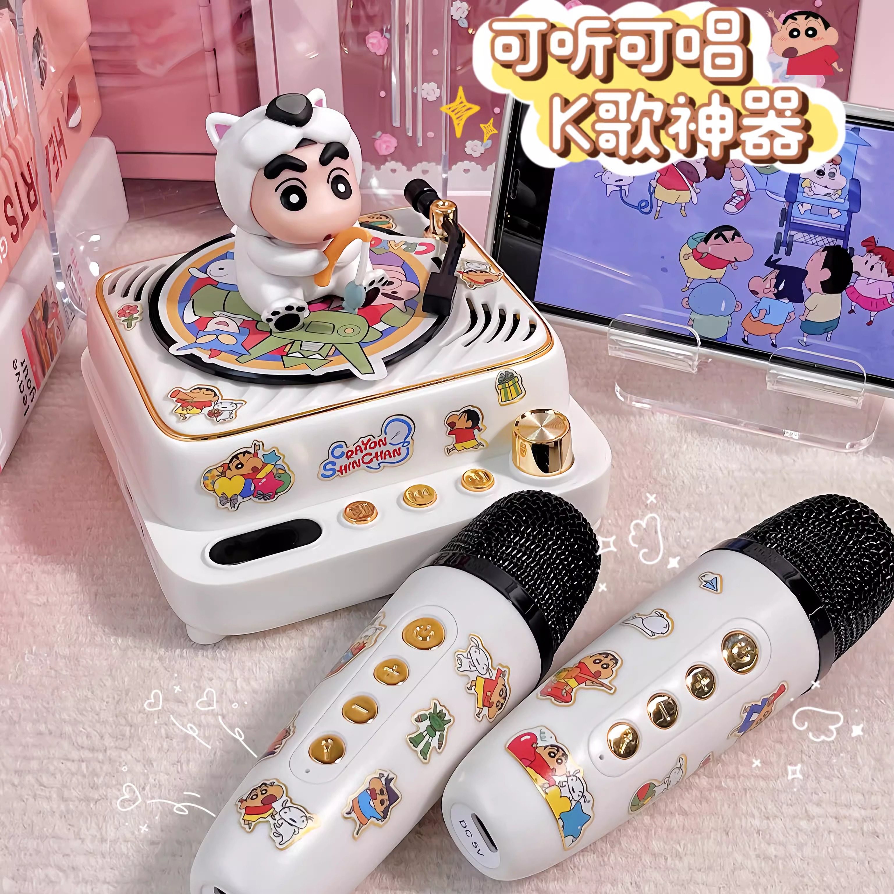 小新复古音响唱片机蓝牙家用无线K歌话筒麦克风送闺蜜生日礼物
