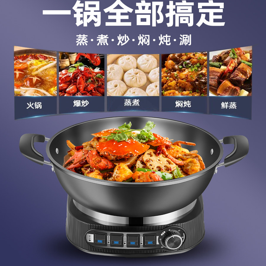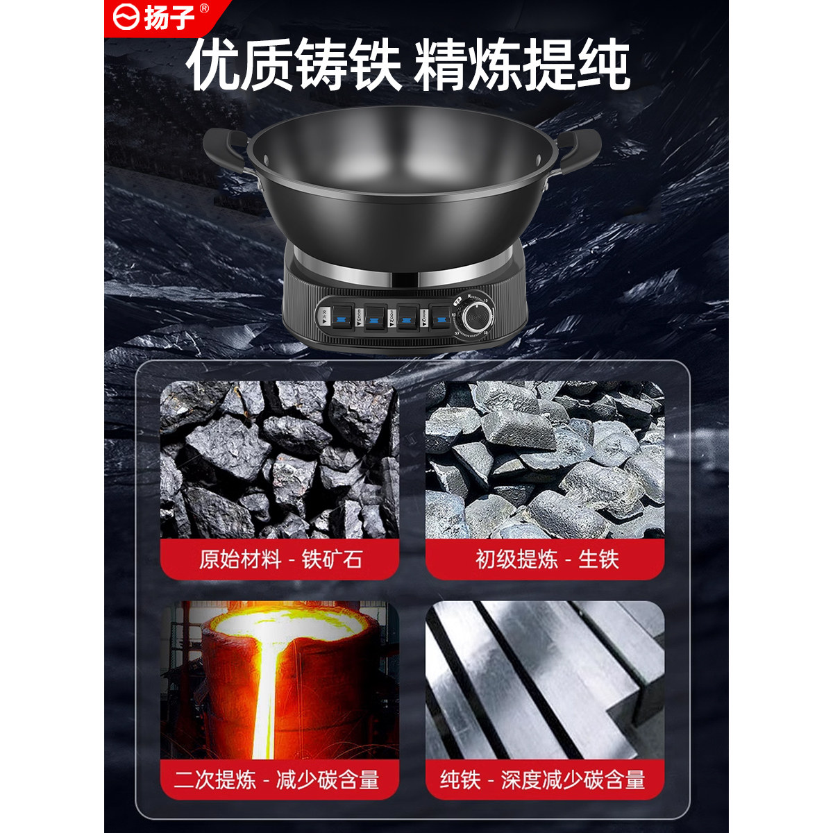 扬子铸铁无涂层电炒锅不粘锅多功能电热锅炒菜蒸煮炖多功能一体锅