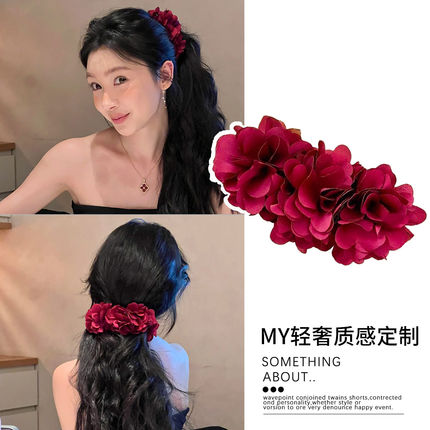 易梦玲同款红色玫瑰花香蕉夹竖夹发量多大号高马尾抓夹发夹女春夏