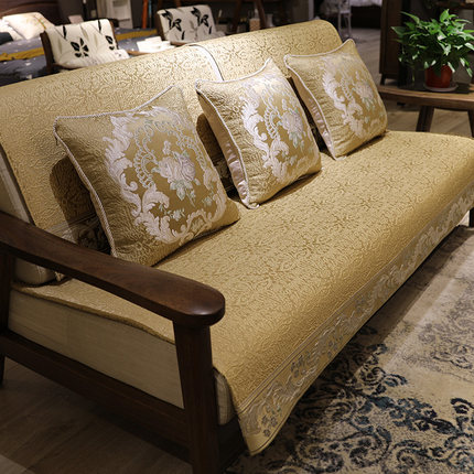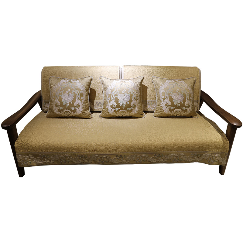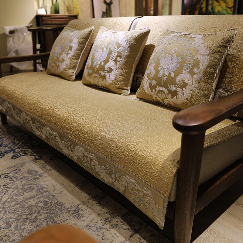 新中式沙发垫现代四季通用防滑实木布艺坐垫子客厅沙发套罩笠定做