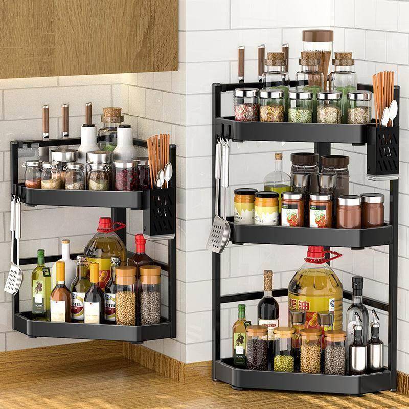 厨房置物架家用台面三角架落地壁挂免打孔收纳架转角调味架刀架
