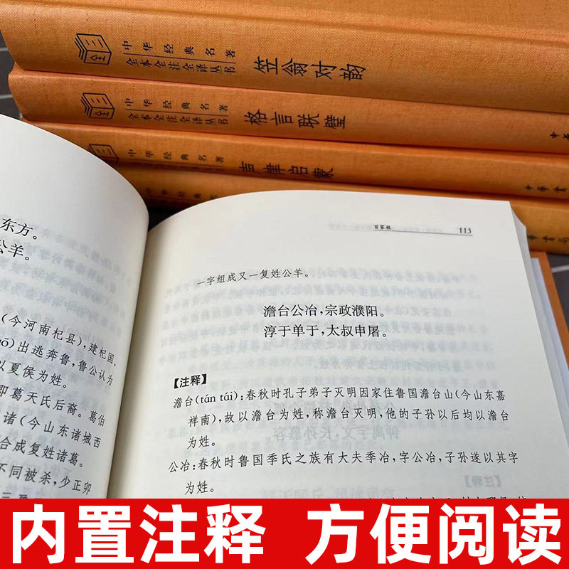 全五本声律启蒙三字经百家姓千字文弟子规千家诗龙文鞭影格言联璧笠翁对韵中华经典名著全本全注全译小学一年级二年级国学中华书局