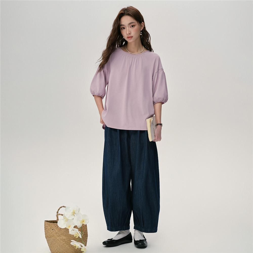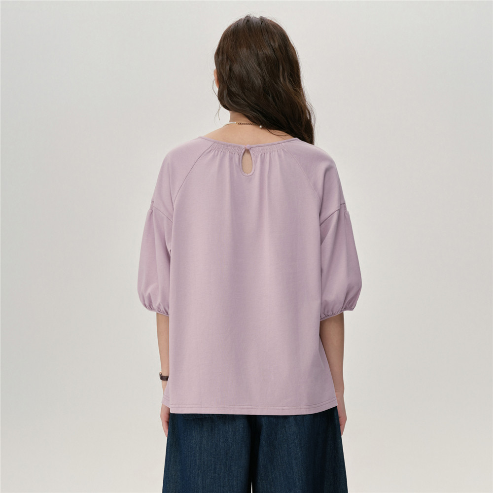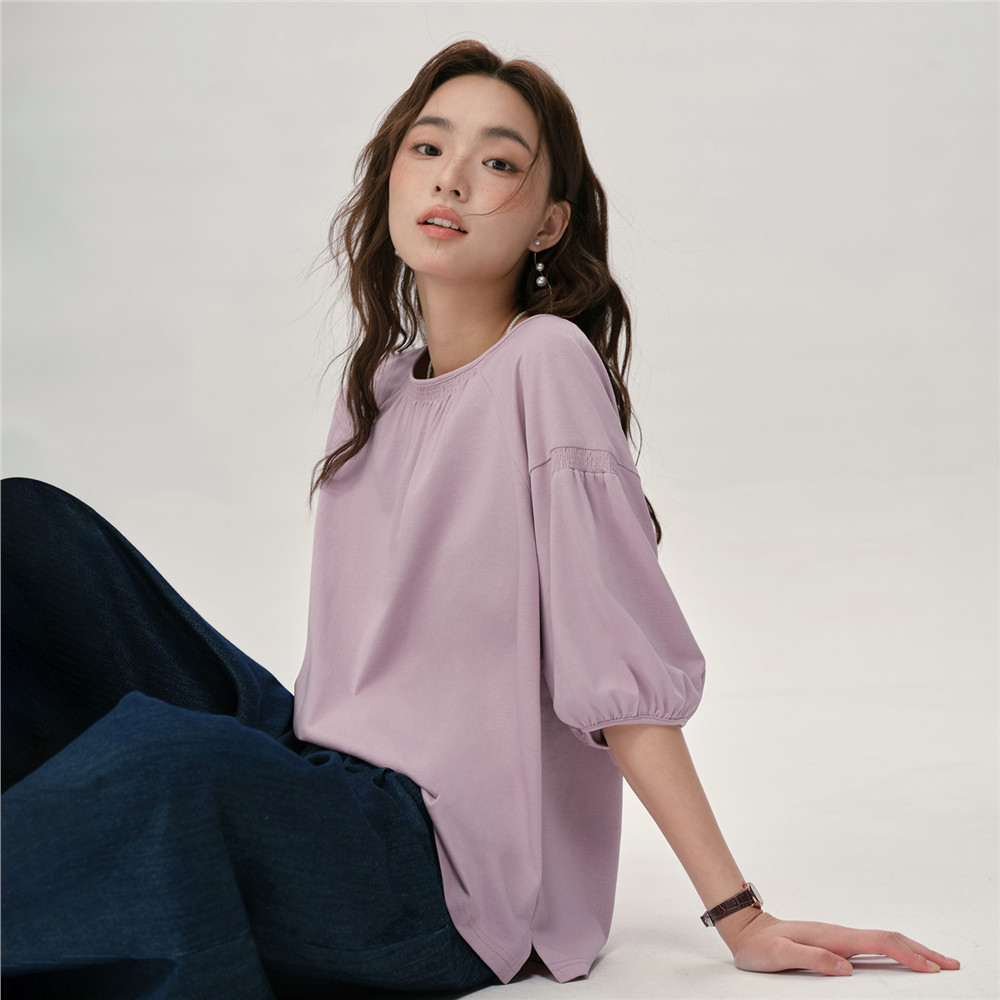 设计师款佐丹奴宽松T恤女新款纯棉打揽圆领插肩中袖t恤女18325213