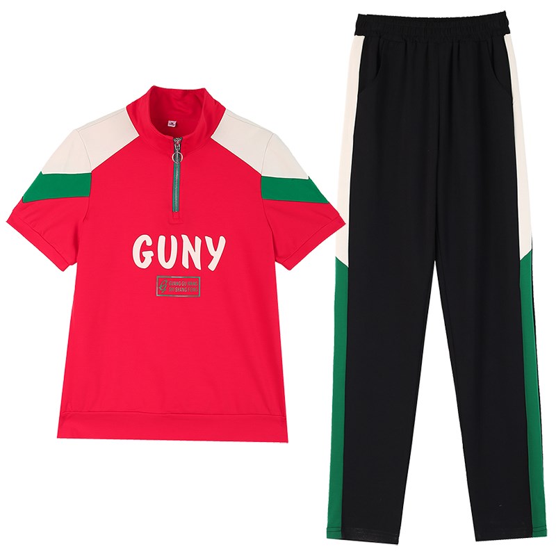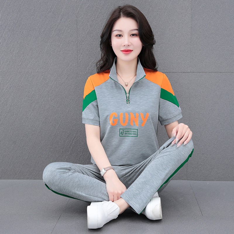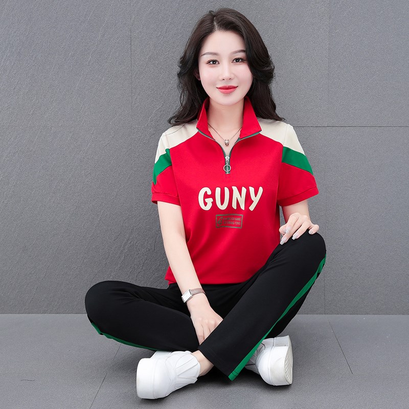 时尚减龄立领运动服套装女2025年夏季休闲宽松薄款跳舞洋气两件套