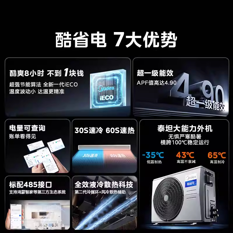 美的中央空调酷省电风管机大3匹家用一拖一客厅一级能效变频