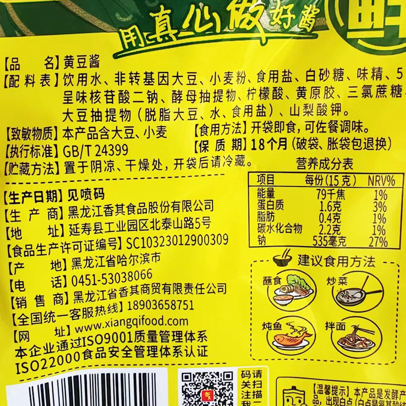 香其黄豆酱450g*2袋 新日期香其酱黄豆酱蘸酱菜炸酱炒菜开袋即食