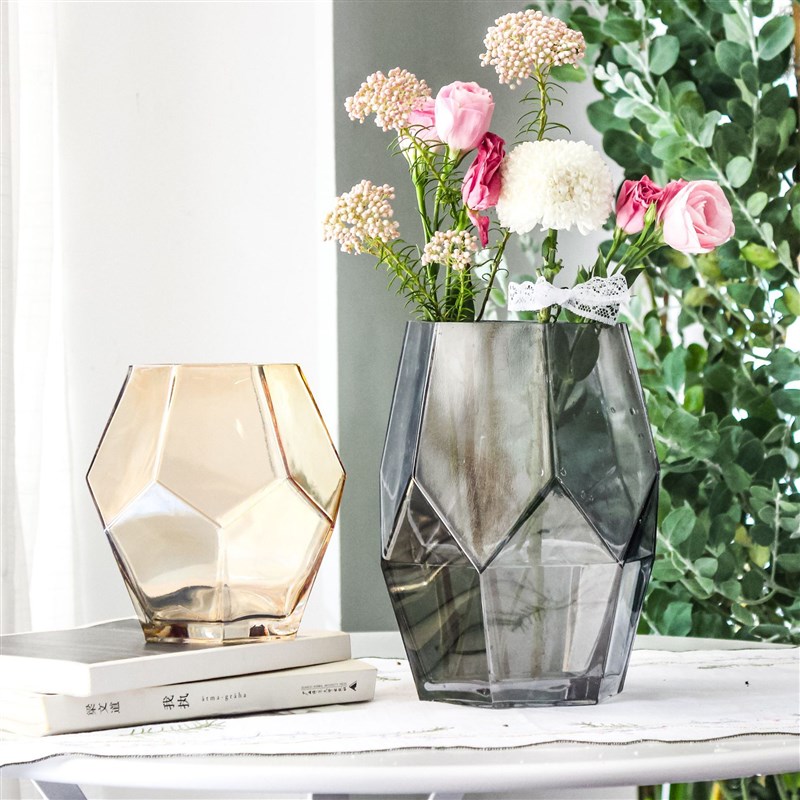几何玻璃花瓶客厅摆件水培富贵竹花瓶透明电镀彩色插花创意花瓶