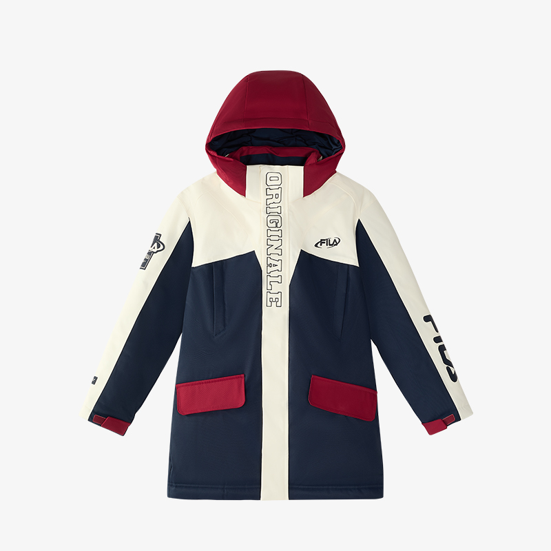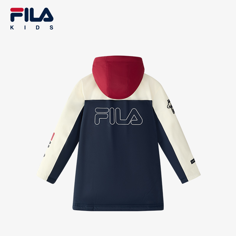 FILA斐乐童装儿童羽绒服中长款2024冬季新款男中大童连帽外套保暖