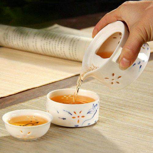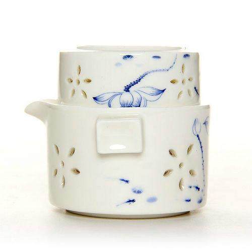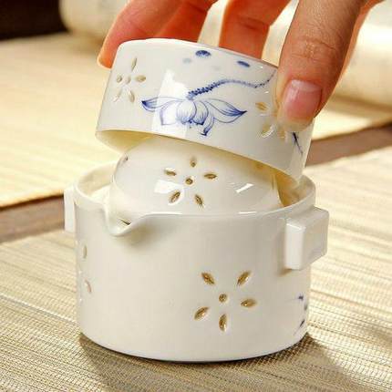 玲珑镂空陶瓷快客杯壶便携旅行茶具套装青花瓷随身茶壶手抓壶户外
