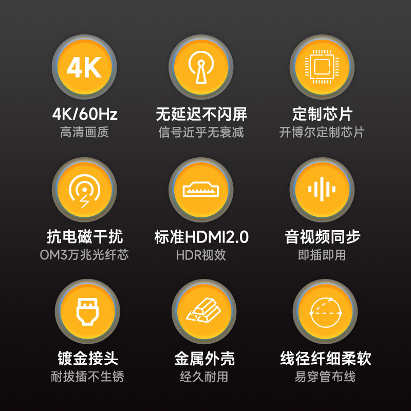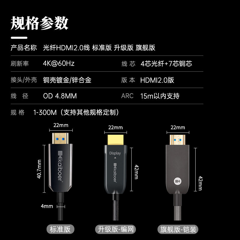 开博尔光纤HDMI线4K60Hz无损传输连接线电视机投影仪2.0版高清线