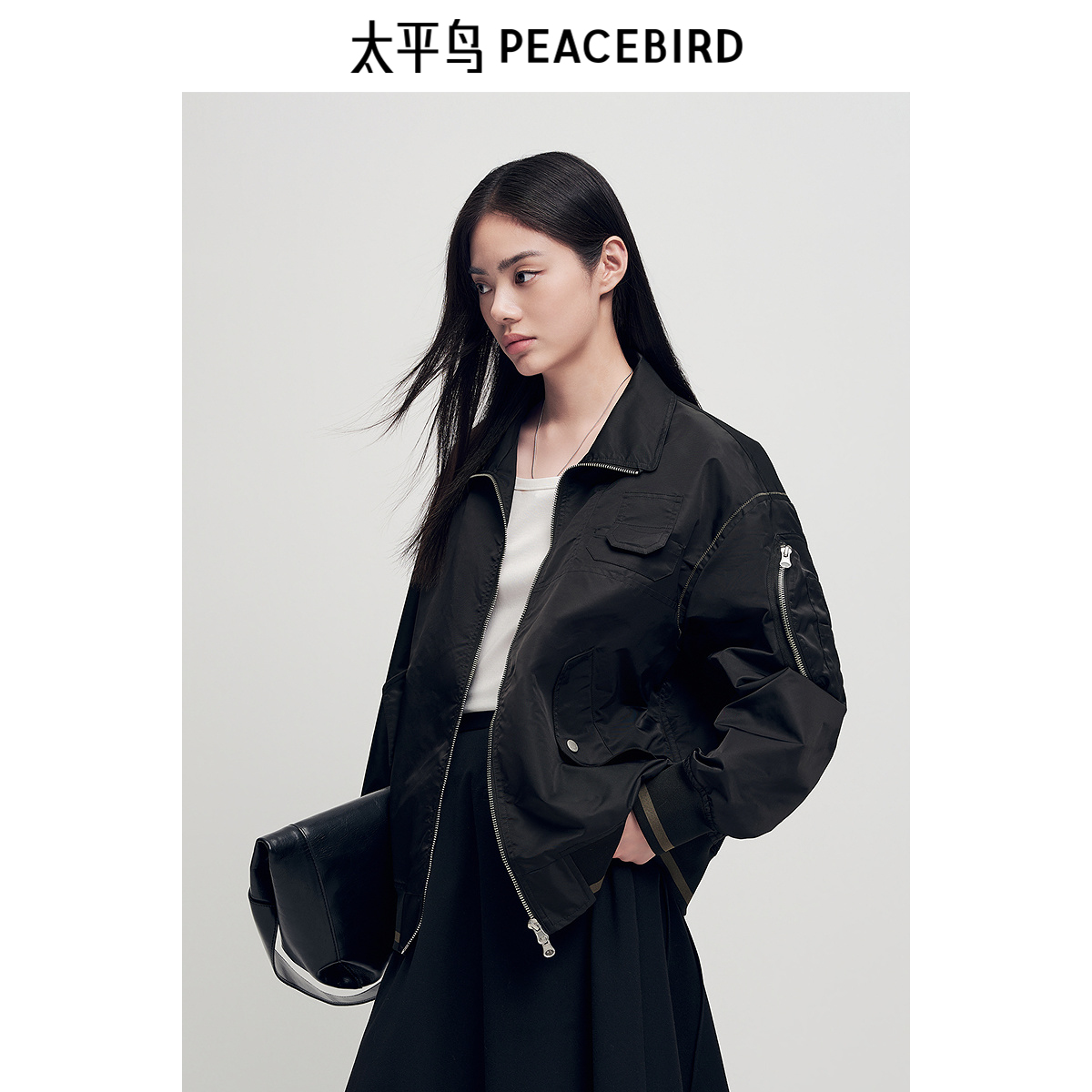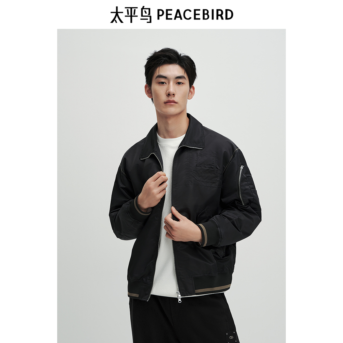 太平鸟男装 复古飞行员夹克男宽松翻领休闲棒球服潮流户外外套Y