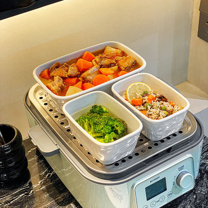 G68陶瓷蒸碗带盖家用电蒸锅专用蒸菜盘耐热芝士焗饭碗长方形烤碗