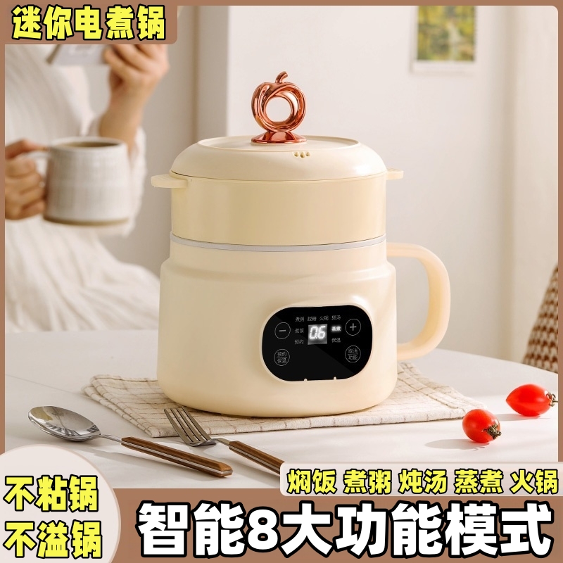 智能电煮锅小电锅不沾内胆学生宿舍家用一体多功能电饭煲烹饪锅