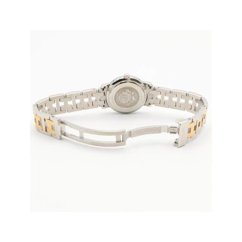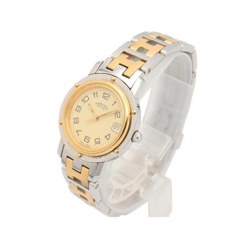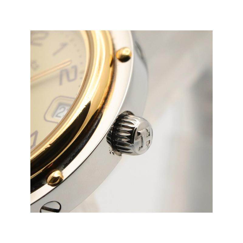中古Hermes爱马仕女A级95新ClipperClipper镀金金属电池表浅褐色