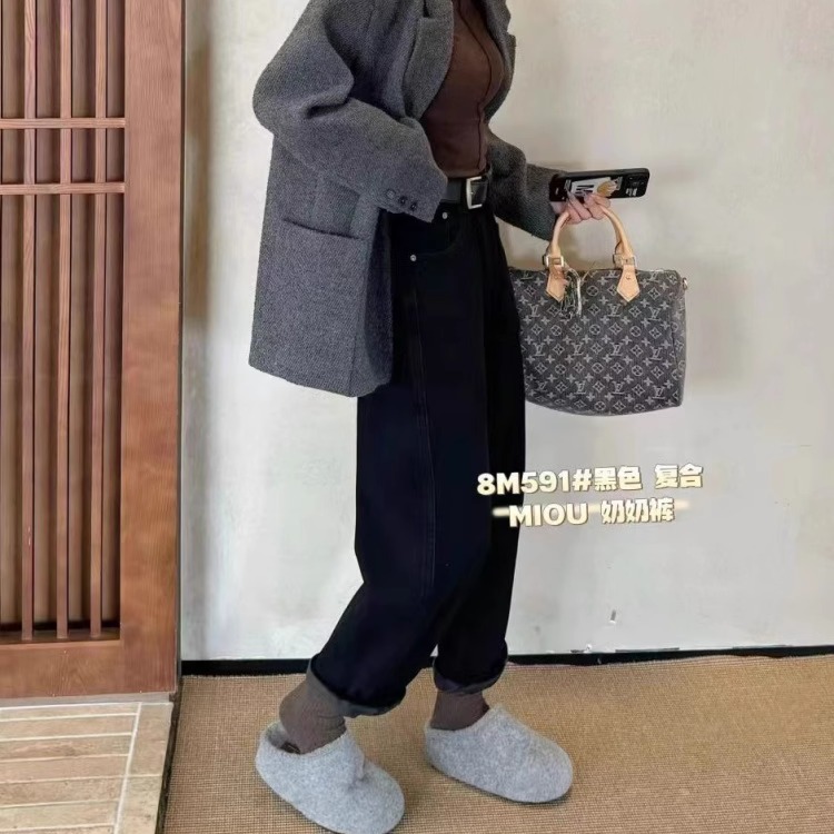 今年流行的爆款牛仔加绒奶奶裤女2025冬季加厚高腰宽松松弛感长裤