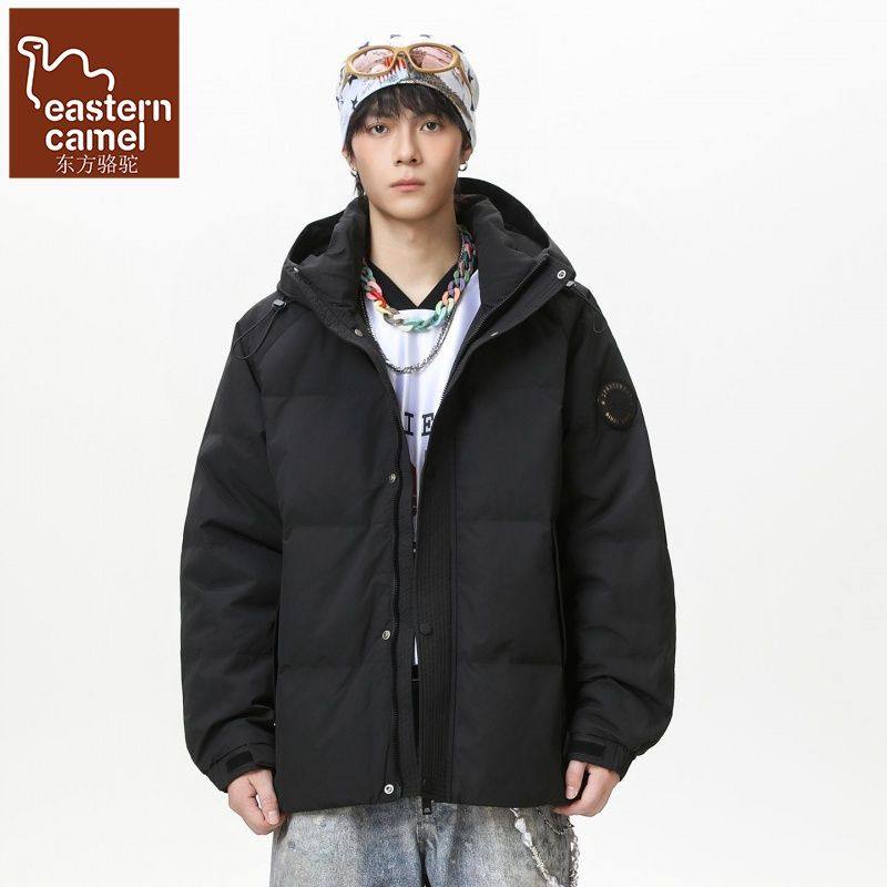 东方骆驼2025冬季新男士短款连帽羽绒服防寒保暖户外加厚宽松休闲