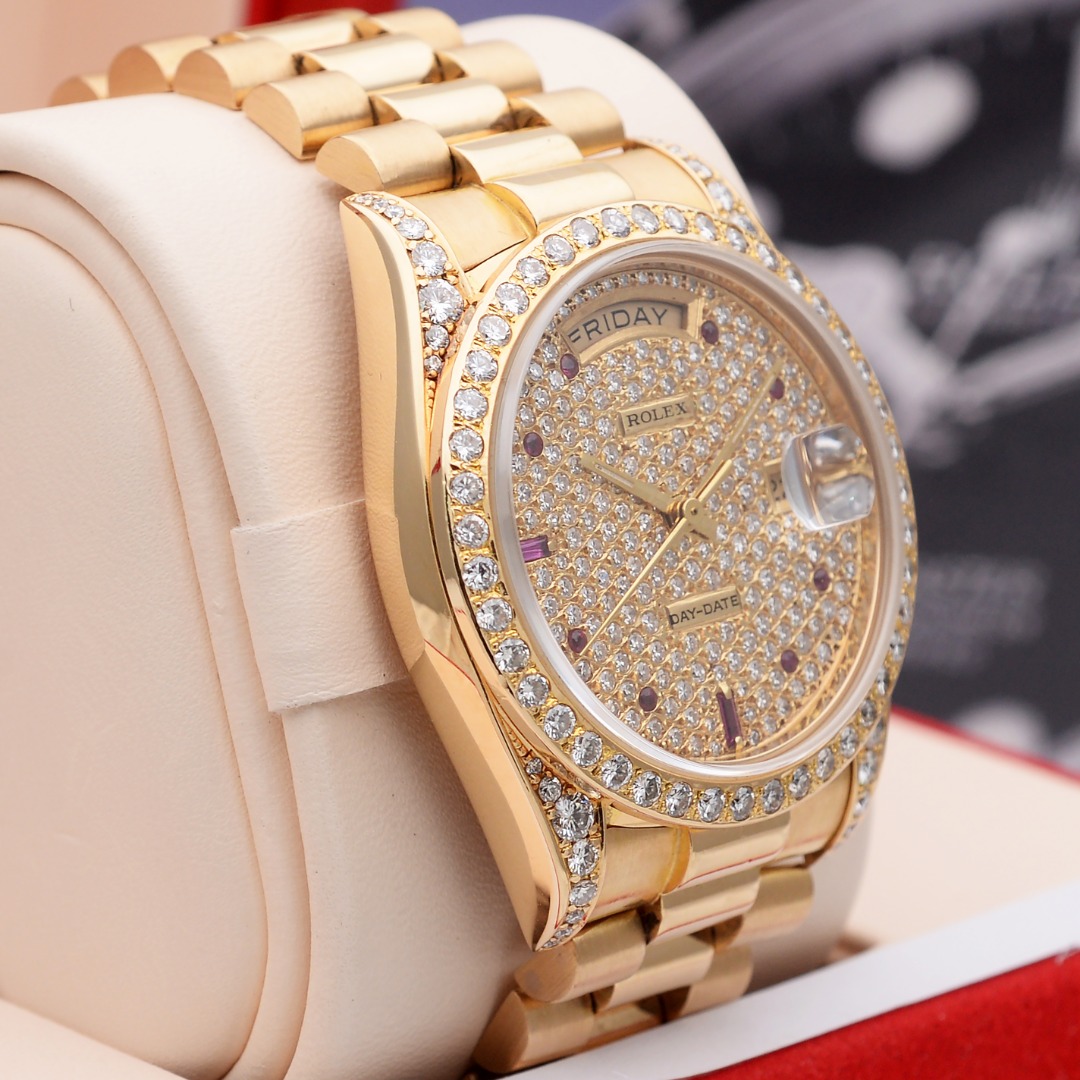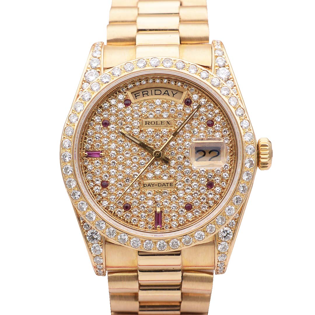 正品[9.8新]劳力士星期日历型满天星后镶钻自动机械男表18038
