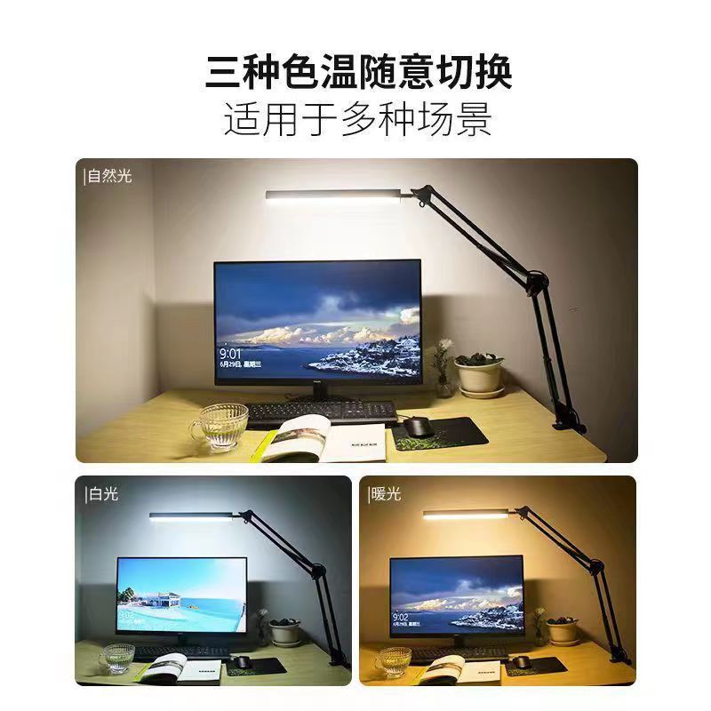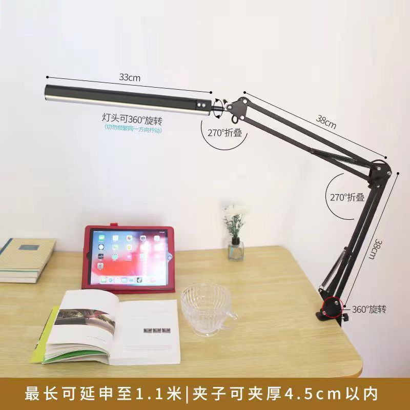 LED折叠护眼台灯长臂工作学习阅读设计绘画美甲桌面夹子折叠台灯